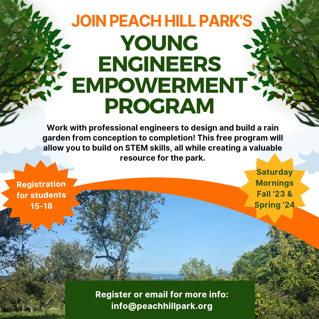 The Dutchess County EMC is partnering with HVEA Engineers and Peach Hill Park to run the pilot program of the Young Engineers Empowerment Program, where high school students learn valuable STEM skills while they design and build a new rain garden for stormwater management at Peach Hill Park.